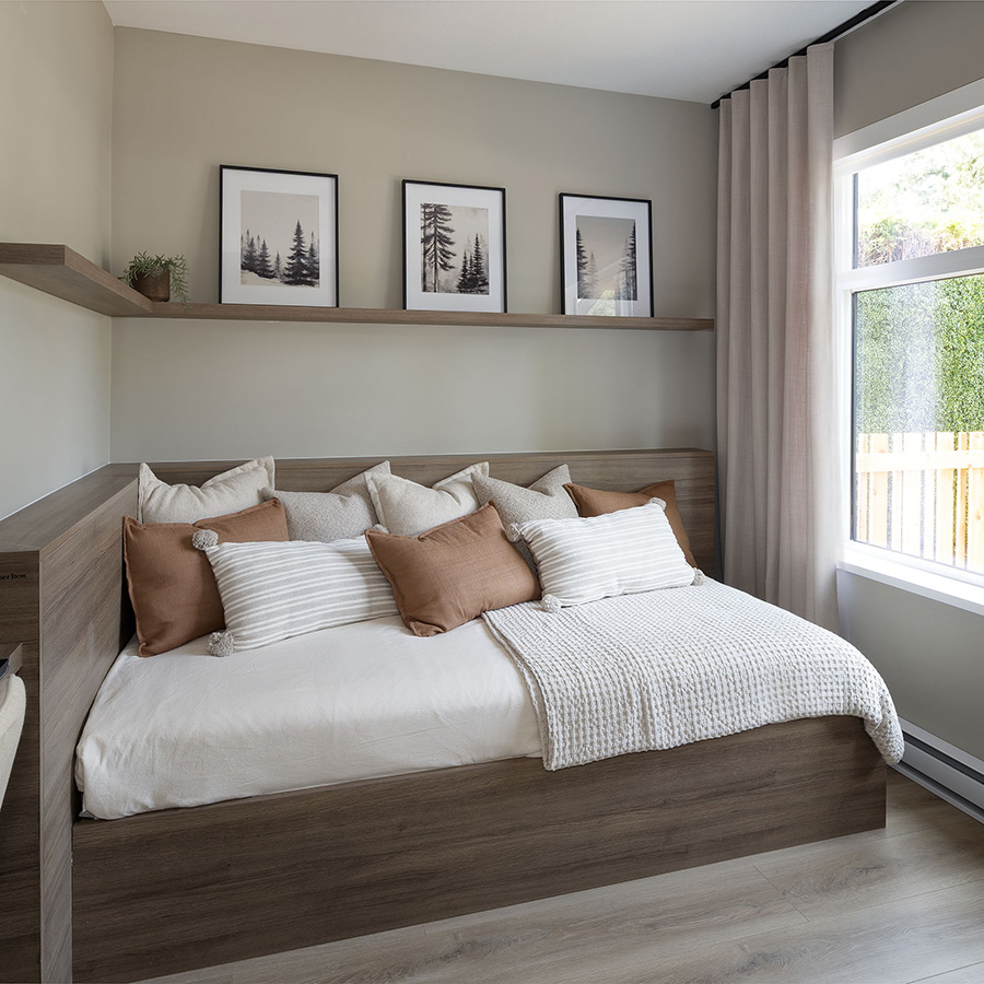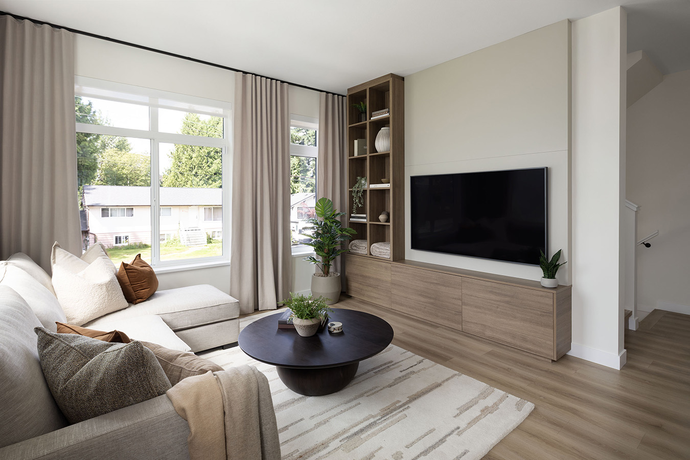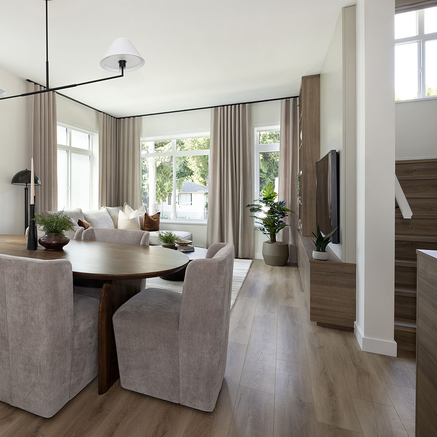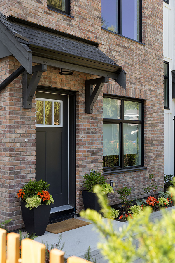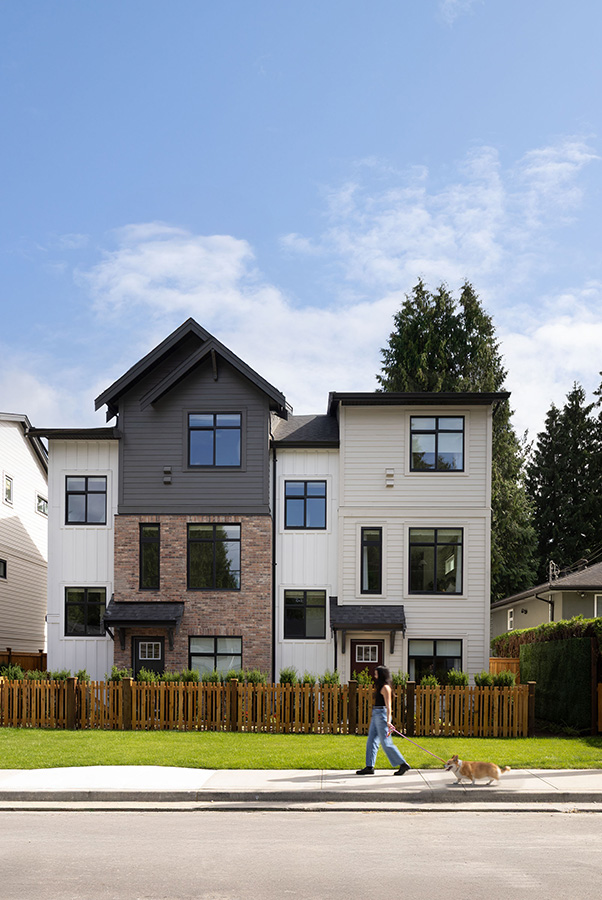 Here, classic charm meets contemporary living. These beautifully crafted townhomes feature a harmonious blend of warm red brick and soft grey siding, creating an elegant yet inviting streetscape. Clean lines, large modern windows and pitched rooflines add architectural interest and natural light, while welcoming front gardens offer a nod to traditional neighbourhood living.